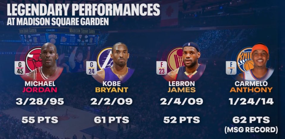 开云-世界最中心!麦迪逊广场最高分:甜瓜62一枝独秀 科比61乔詹随后